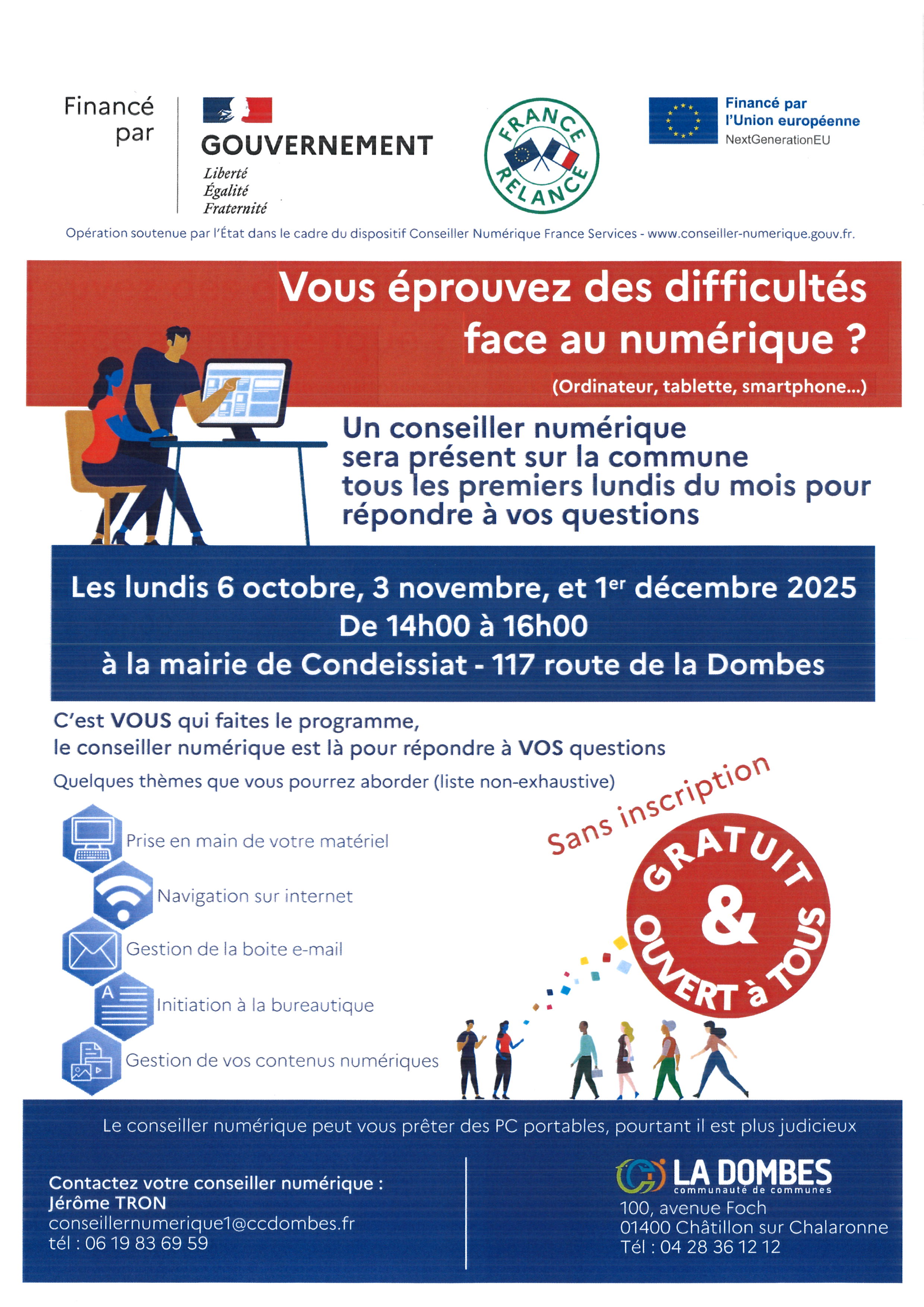 Un conseiller numérique sera présent à Condeissiat pour répondre à vos questions en matière de